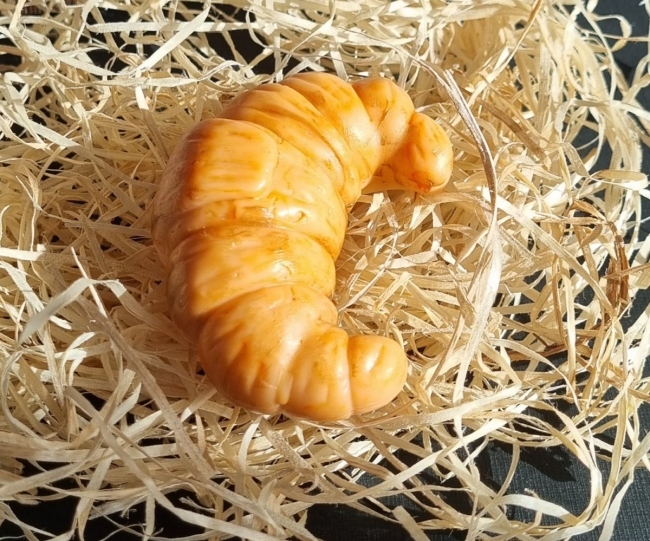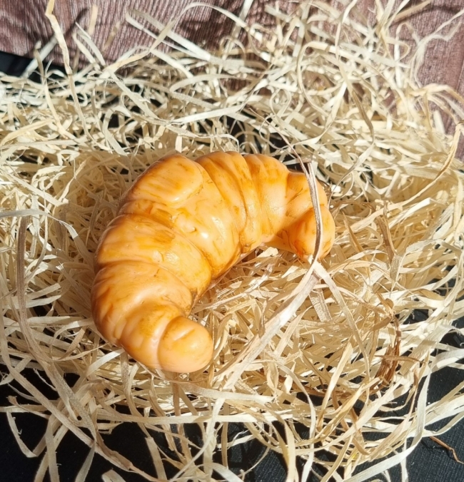 Cette petite bougie de 40g en forme de croissant est un véritable clin d’œil à la gourmandise française. Ses courbes dorées reproduisent l’aspect feuilleté et croustillant d’un croissant tout juste sorti du four.
