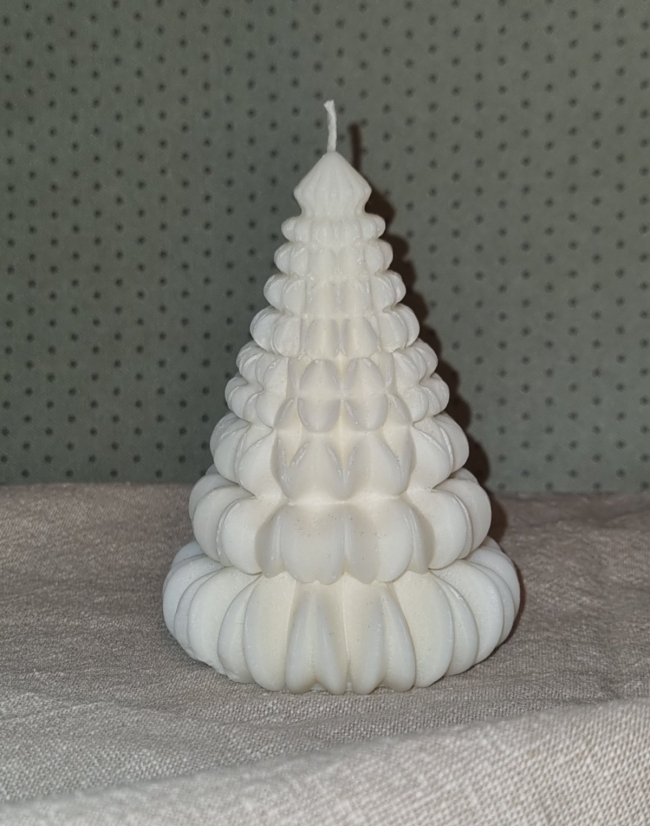 Cette bougie, inspirée de l’art délicat de l’origami, revisite le sapin de Noël dans une version géométrique et contemporaine. Chaque pli de cire semble avoir été soigneusement façonné à la main, formant un jeu subtil d’arêtes et de facettes qui captent magnifiquement la lumière.